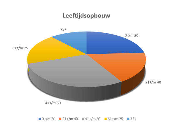 De leeftijdsopbouw van de gemeente is als volgt, uitgesplitst naar de vijf doelgroepen: